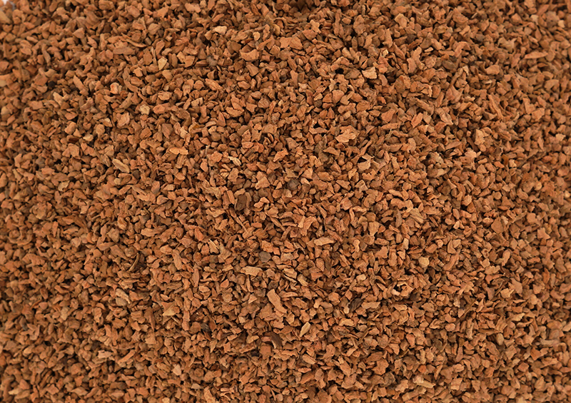 軟木顆粒的原材料是由栓皮、橡木樹皮長至成熟之后,由人工剝落,后進行挑選,留下樹肉彈性好、色澤光亮的樹皮,經切割、捆扎之后送至工廠,后經破碎、數次研磨、風選、分篩之后包裝而成。